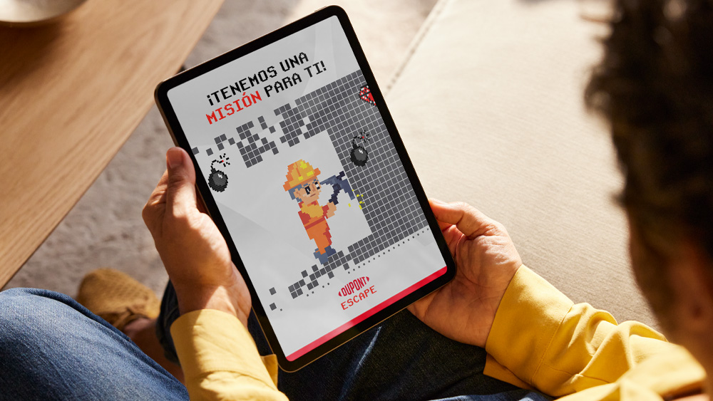 People engage when they feel challenged — even more so when there’s a reward at stake. We created DuPont Escape, a game inspired by the mining universe with a simple yet captivating dynamic: collect diamonds and dodge dangers. In the end, access to the Playbook is unlocked as the prize — either to recognize the player’s strong performance or to help them stay safer in mining activities.